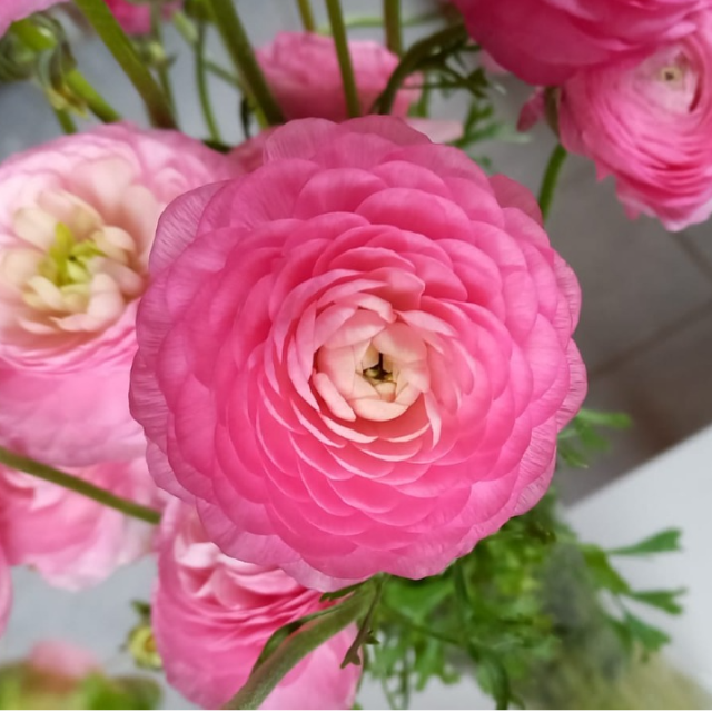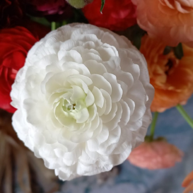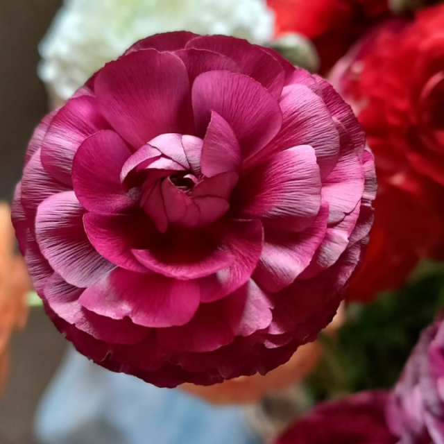 Ranunculos are available in 40-45cm and 50-55cm lengths and are packed 120 stems per EB box