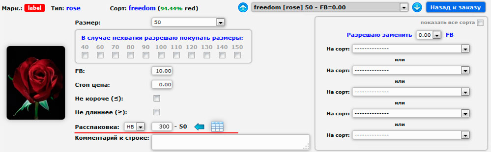 | On our website there is a tool for our customers that allows, if not to fix the required flowers pack rate in a box, then at least clearly indicate the pack rate for each order, and thereby increase the likelihood of correct order execution.