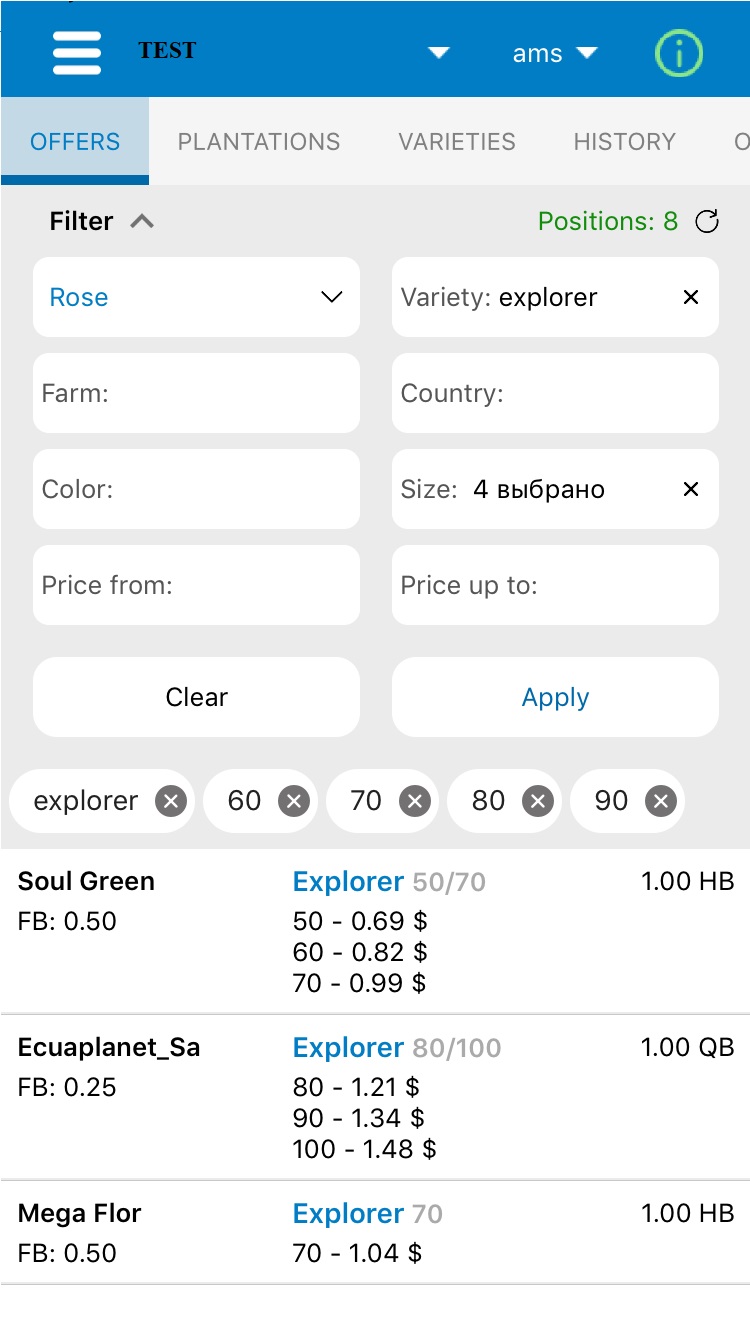 After that the filters system are available for you and you can select variety, plantation, length and other parameters. Also you can set an acceptable price range.