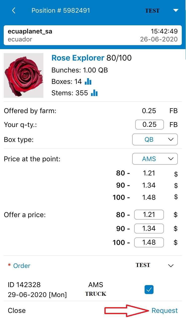 To send a request to purchase the required position, please click the button "Request".