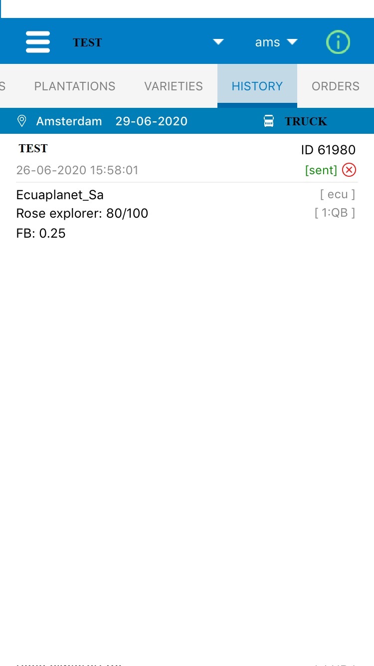When selecting the tab “History”, the User can see all the requests that he has sent.