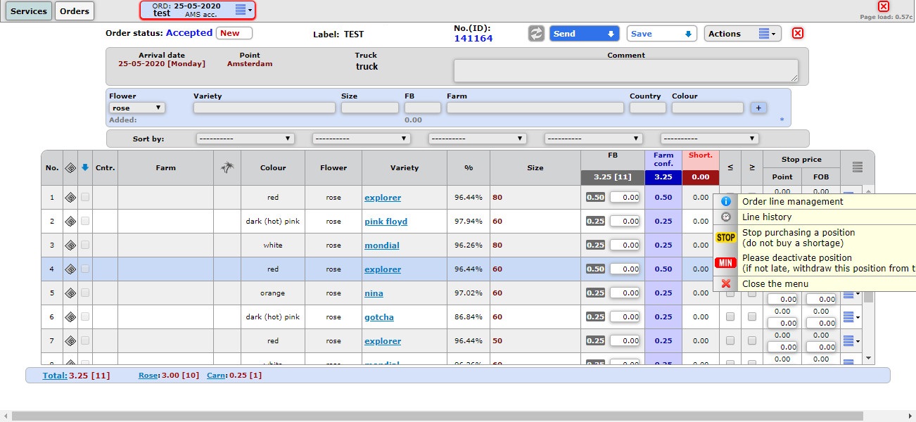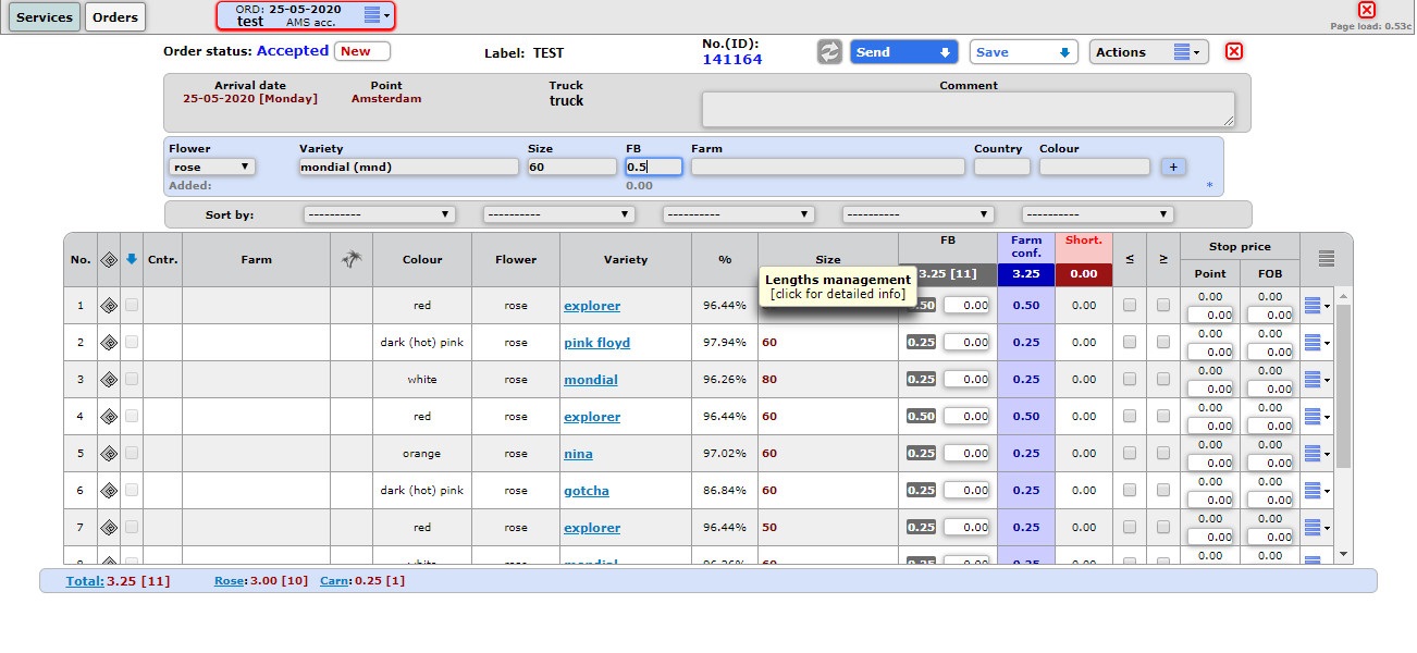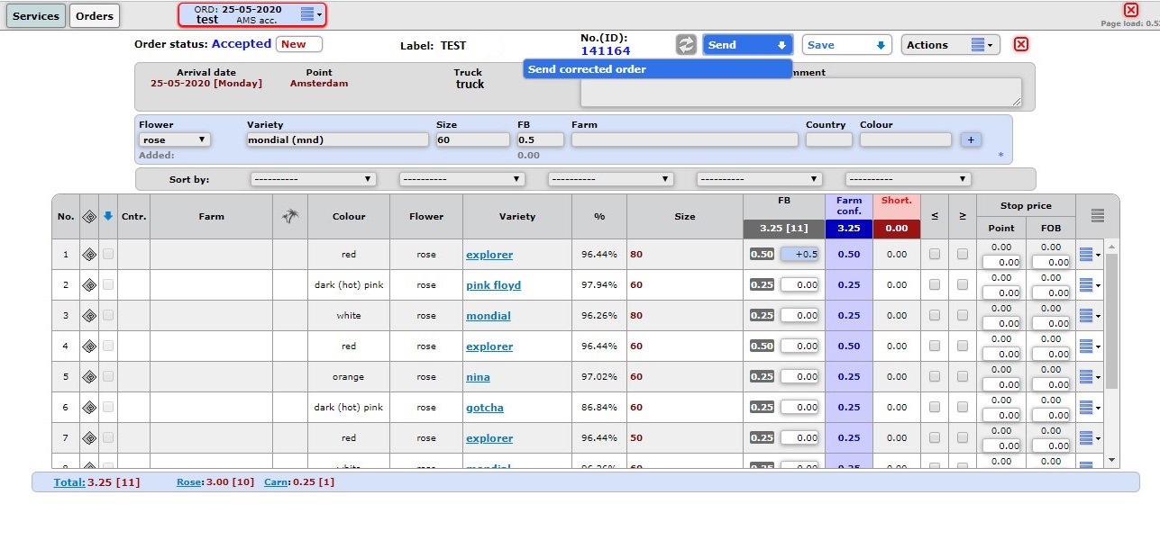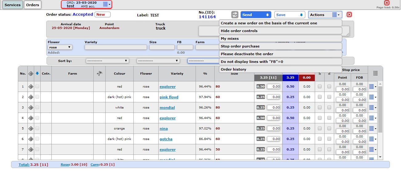 If the order that has been sent from Daoflowers website has been already imported into our system and is located in the section “accepted”, please use the special button “+” of the additional order, after specifying variety, length, quantity (farms / countries - optionally).